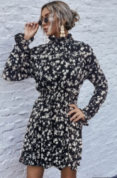 • Kadın uzun kollu balıkçı yaka çiçek baskılı helen kumaş elbise