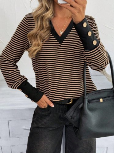 • Kadın uzun kollu v yakalı desenli süprem bluz