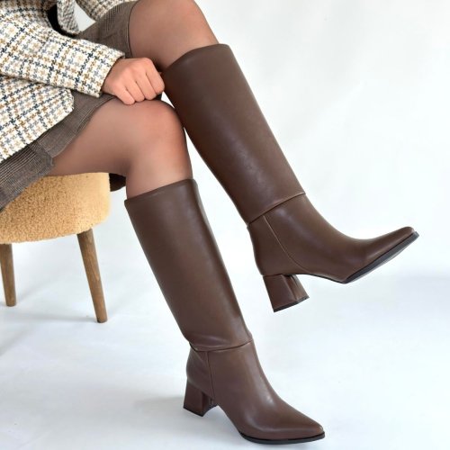Roksa Acı Kahvei Cilt Topuklu Çizme