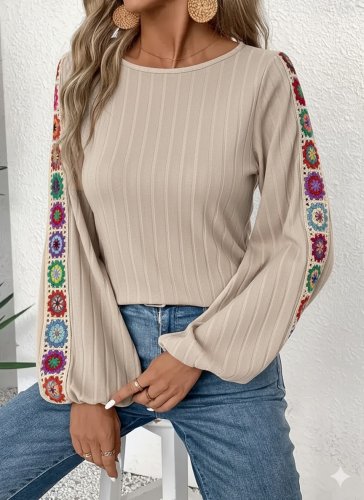 Kadın uzun kollu kayık yaka şardonlu kaşkorse bej bluz